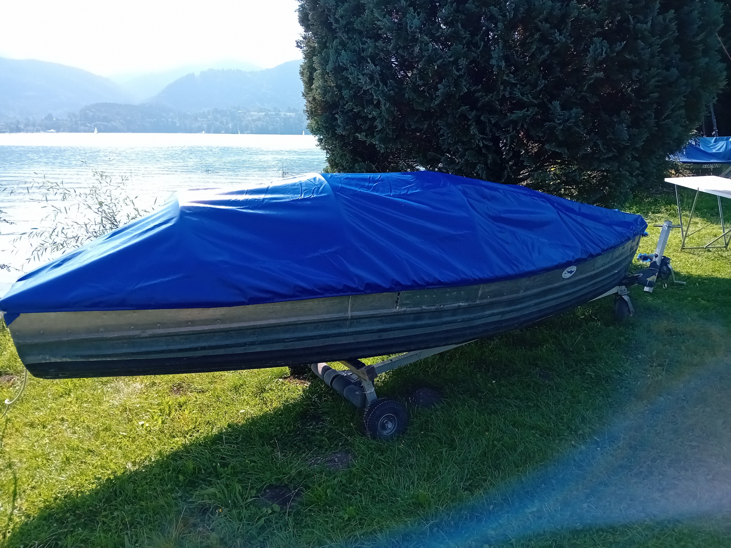 Da der starke 10mm Gummizug nicht ganz so frei in der Führung läuft krumpelt es die Plane an einigen Stellen etwas zusammen. Das wird sich zurecht zuppeln mit der Zeit.